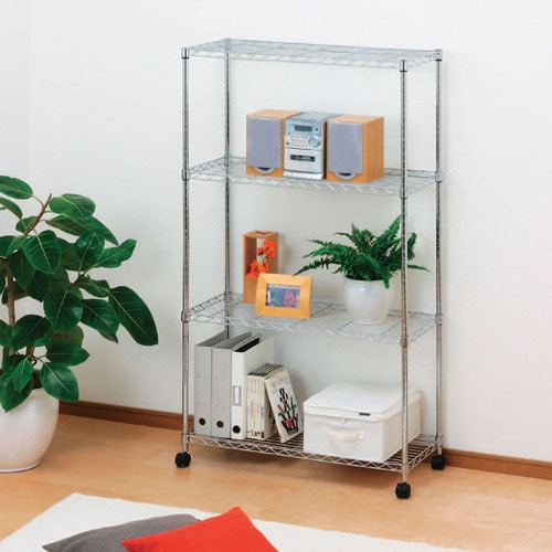 アイリスオーヤマ メタルシェルフ 4段 幅800×奥行350×高さ1490mm キャスター付 SEM-8015 1台