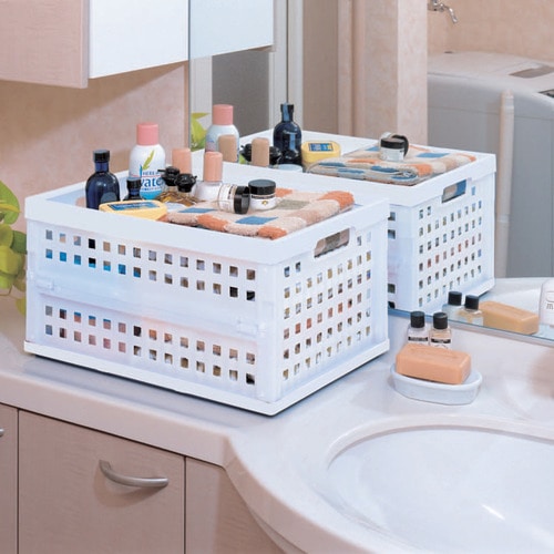 商品仕様 | ●容量/28L ●耐荷重/約10kg ●寸法/W約450×D約325×H約240mm ●有効内寸/W約427×D約302×H約228mm ●色/ナチュラル ●最大積み重ね段数/3段 ●折りたたみ時高さ/53mm ●材質/ポリプロピレン |