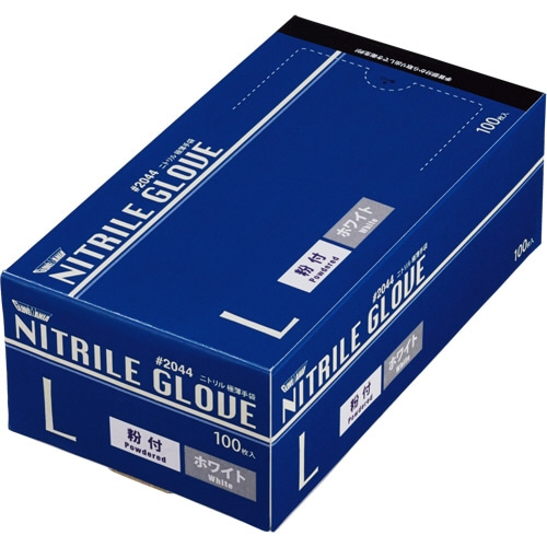 川西工業 ニトリル 使いきり極薄手袋 粉付 ホワイト L #2044 1箱(100枚)