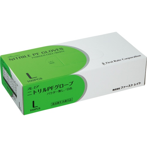 ファーストレイト プレミアニトリルPFグローブ パウダーフリー ホワイト L FR-858 1箱(100枚)