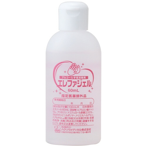 ハクゾウメディカル アルコール手指消毒剤 エレファジェル 60mL 1本