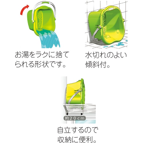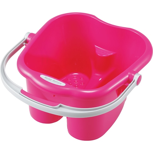 ●お湯をラクに捨てられる形状の足湯バケツ、ピンクです。