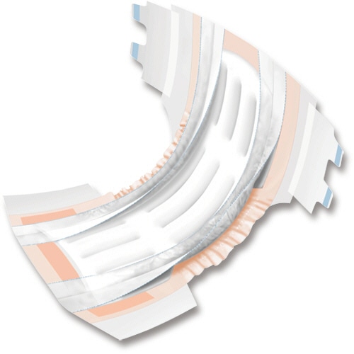 ●超立体3重ギャザーが股ぐりにフィットして横モレ防止。尿とりパッドもしっかり固定するテープ止めタイプのLLサイズ。