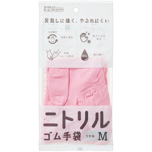 ダンロップホームプロダクツ 生分解性ニトリルゴム うす手手袋 M ピンク 9600 1双