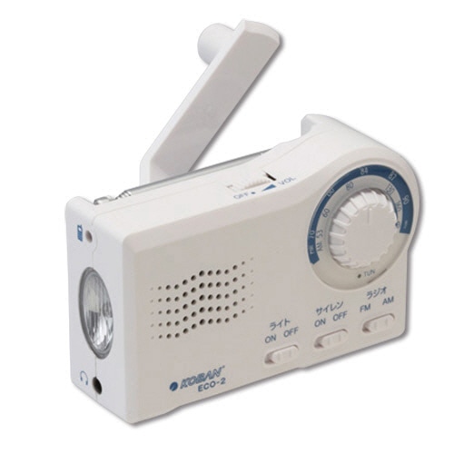 | 商品仕様 | ●寸法/W104×D46×H66mm ●質量/182g ●電源/単4乾電池×2本(別売)または手回し充電 ●電池持続時間/ラジオ:約15分(1分間手回し充電)・約40時間(乾電池)、ライト:約10分(1分間手回し充電)・約19時間(乾電池) ●その他仕様/●スーパーキャパシタ、AM/FMラジオ対応、携帯電話・スマートフォンに充電可能 ●備考/※重量は乾電池別。 ※スマートフォンに充電する場合、スマートフォンに付属している充電ケーブルが必要となります。 ※一部の機種には対応しておりません。 |