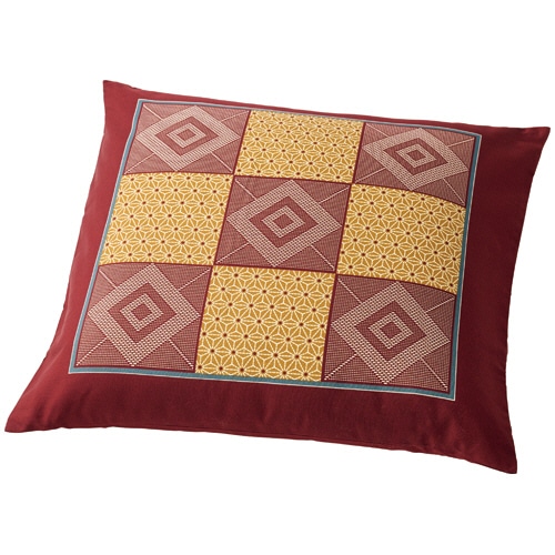 ●銘仙判サイズの座布団用カバー、香織市松・色はエンジの5枚組です。