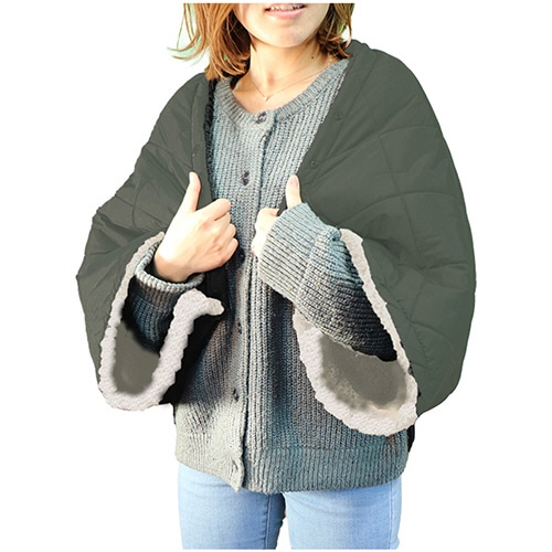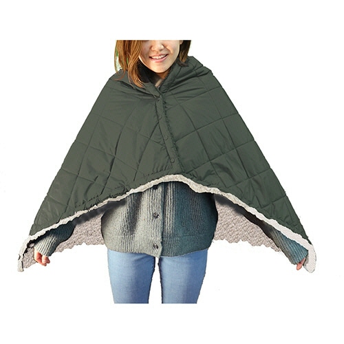 iiもの本舗 hokotto 極厚裏ボア 4WAYブランケット カーキ×アイボリー 1枚