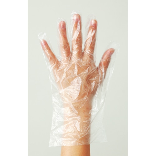 【食品衛生法適合】伸びにくいカサカサタイプポリエチレン手袋。