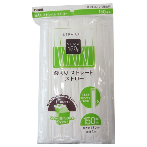 日本デキシー 袋入りストレートストロー(紙包装) 1パック(150本)