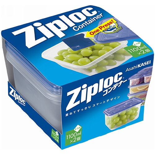 旭化成ホームプロダクツ ジップロック コンテナー 正方形 1100mL 1パック(2個)
