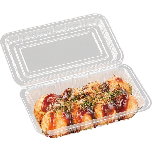 お手軽!屋台や総菜コーナーでおなじみ、フタ一体型使い切り容器。