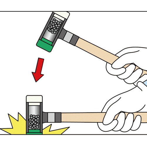 ●ショックレス構造で反動を吸収。ヘッド内部に小鋼球が入っているので、反動を吸収し楽に作業できます。