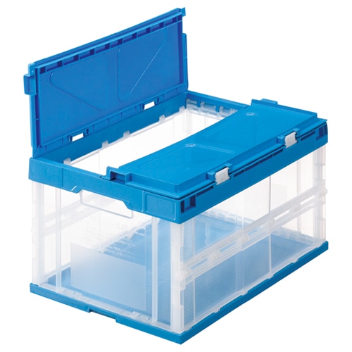 TANOSEE 折りたたみコンテナ フタ一体型 40L 透明/ブルー 1台