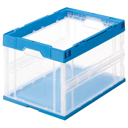 TANOSEE 折りたたみコンテナ 50L 透明/ブルー 1台