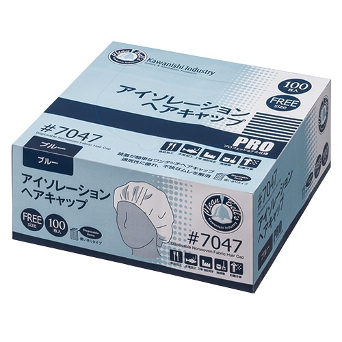 川西工業 不織布アイソレーションヘアキャップ ブルー 7047 1箱(100枚)