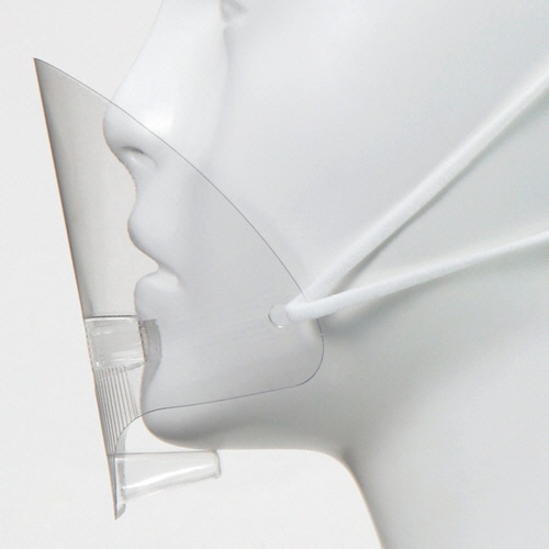 対面接客時に表情が見えるので好印象。使い捨てタイプの透明マスク。