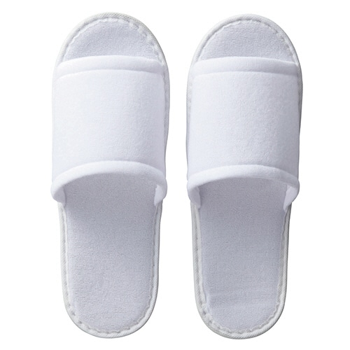 ホテルや機内などの手軽に持ち運んで使えるパイルスリッパ。