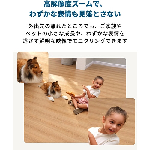 ●高解像度ズームにより、大切なご家族やペットのわずかな表情や、ささいな成長を外出先の離れた場所からでも鮮明な映像で見守ることができます。