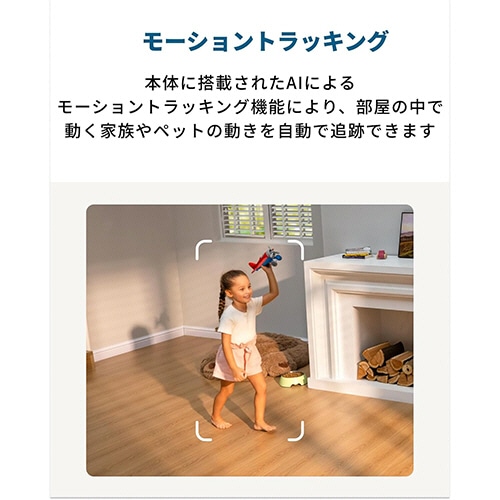 ●本体に搭載されたAIによるモーショントラッキング機能により、部屋の中で動く家族やペットの動きを自動で追跡ができます。