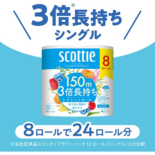 日本製紙クレシア スコッティ フラワーパック 3倍長持ち シングル 芯あり 150m 香り付き 1パック(8ロール)
