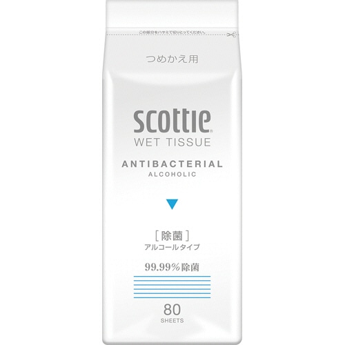 日本製紙クレシア スコッティ ウェットティシュー 除菌 アルコールタイプ つめかえ用 1パック(80枚)