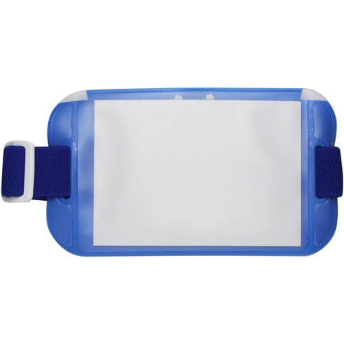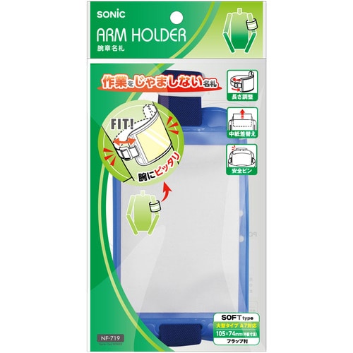 作業などの動きの邪魔にならない腕章型の名札。長さ調整ゴムバンドで腕にぴったりフィット。