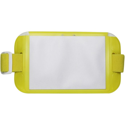 作業などの動きの邪魔にならない腕章型の名札。長さ調整ゴムバンドで腕にぴったりフィット。