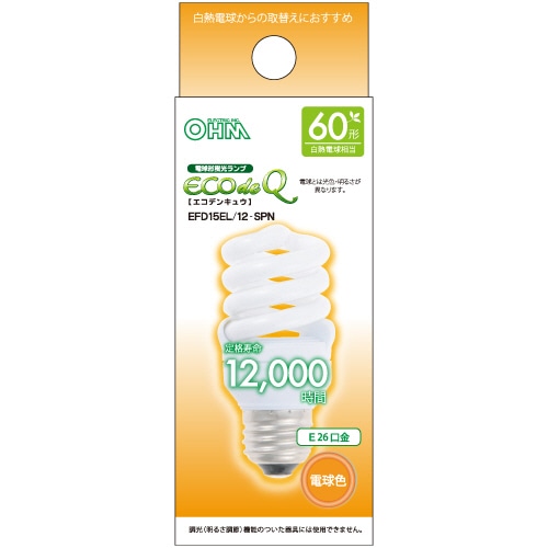オーム電機 電球形蛍光灯 エコ電球 D形 60W形 E26 電球色 EFD15EL/12-SPN 1個