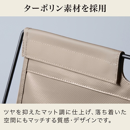 ●テントや横断幕に使われるターポリン素材を採用。水や汚れを弾きやすいため、飲み物をこぼしてしまったり、雨で濡れた荷物を置いたりしてもサッと拭き取ることができます。耐久性にも優れており、安心して長くお使いいただけます。
