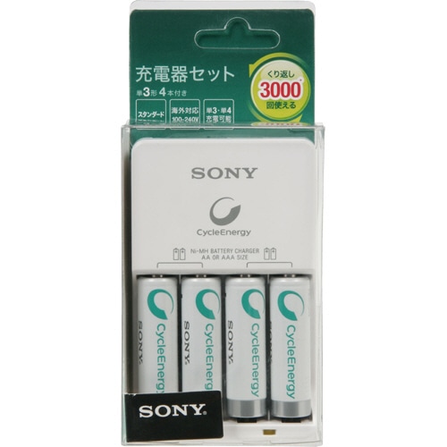 ソニー ニッケル水素スタンダード充電器セット 単3形「サイクルエナジーシルバー」4本付 BCG34HH4R 1パック