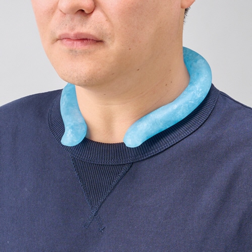 | 商品仕様 | ●サイズ/L ●重量/約125g ●色/ブルー ●材質/内材:P.C.M(冷却素材)、外材:TPU ●品種/ネッククーラー ●その他仕様/●サイズ:[内径]約12cm、[首まわり]約38cm ●使用時間目安:約60~120分(環境温度28℃の場合) ●冷却方法:[冷水]約30~40分、[冷蔵庫・冷凍庫]約20~30分 |