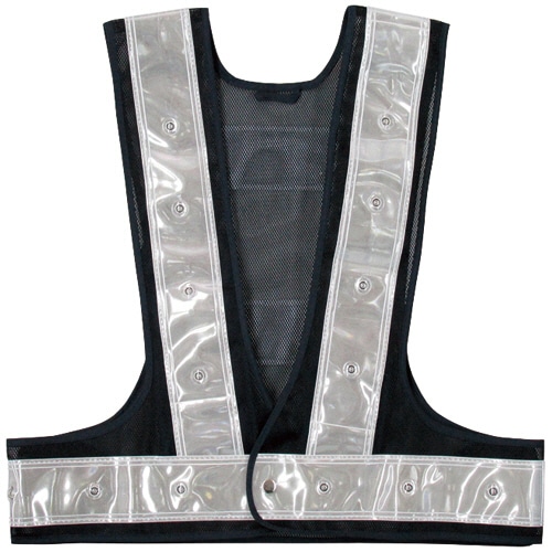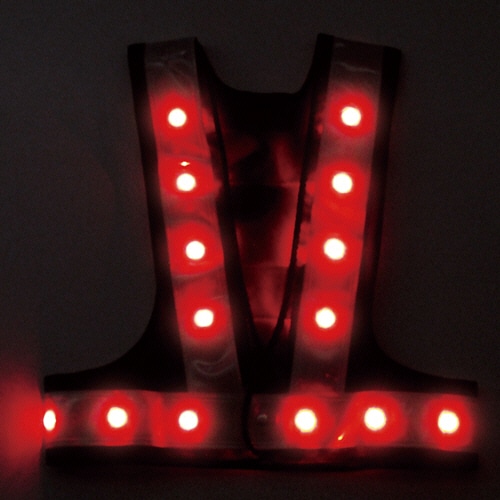 高輝度LEDを使用。多機能ポケット付の反射ベスト。