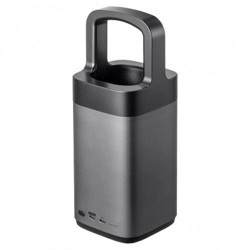 持ち運びしやすいハンドル一体型モバイルバッテリー。