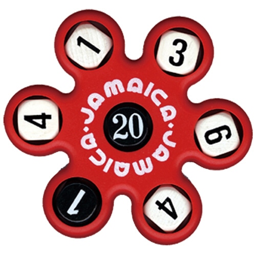 ●黒サイコロの数字の合計を5つの白サイコロの数字でつくる計算ゲーム。赤色です。