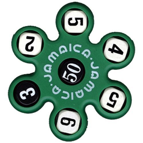 ●黒サイコロの数字の合計を5つの白サイコロの数字でつくる計算ゲーム。緑色です。