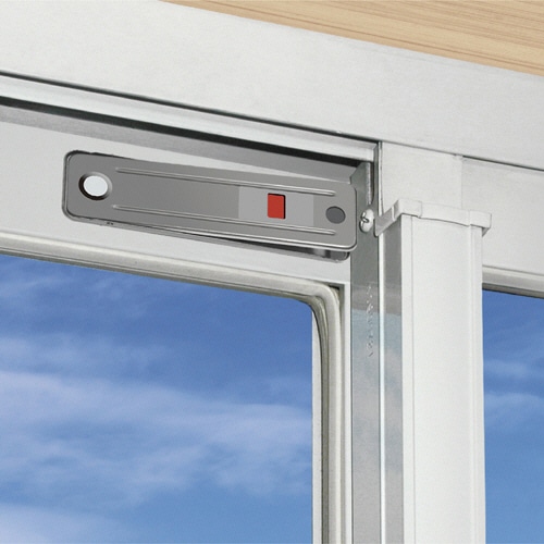 施錠したかが一目でわかる、お知らせ窓(インジケーター)付きのサッシ用簡易補助錠。