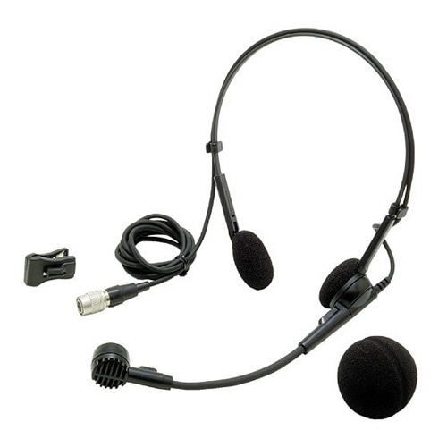 動きまわってもズレにくいヘッドセットタイプの軽量ハンズフリーマイク。