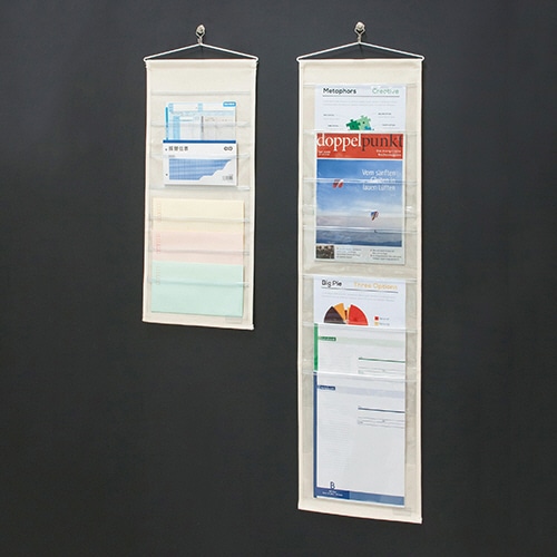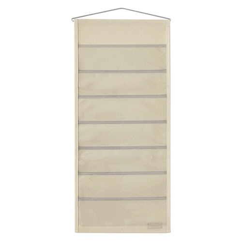 | 商品仕様 | ●色/キナリ ●寸法/W280×D×H630mm ●材質/11号帆布、PVC、アルミハンガー ●その他仕様/●7ポケット ●ポケットサイズ:W260×H85mm ●耐荷重:1kg |