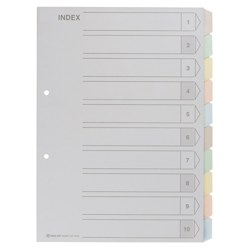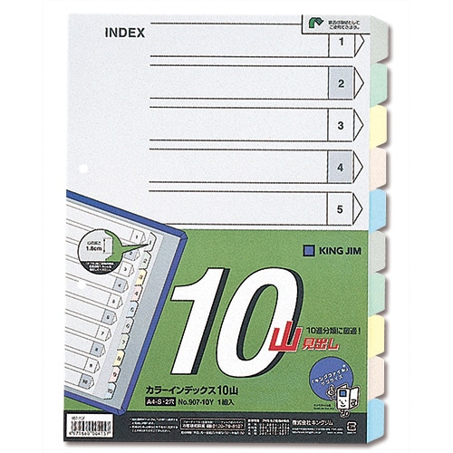 キングジム カラーインデックス A4タテ 2穴 5色10山+扉紙 907-10Y 1組