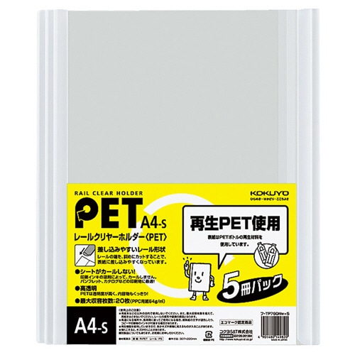 コクヨ レールクリヤーホルダー PET A4タテ 20枚収容 白 フ-TP760NWX5 1パック(5冊)