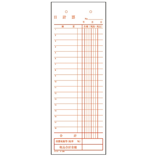 コクヨ 日計票(赤刷り) 別寸タテ型 白上質紙 100枚 テ-19 1冊