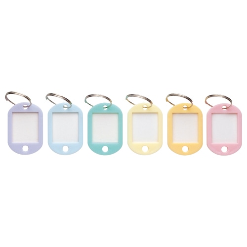 商品仕様 | ●色/桃、黄、青、紫、緑、橙 ●寸法/タテ38×ヨコ26mm ●リング内径/φ18mm ●中紙サイズ/タテ23×ヨコ21mm ●表示面/両面 ●材質/表示面:ABS、カバー:PET ●備考/※サイズはリング含まず。 ※6色 各5個入 |