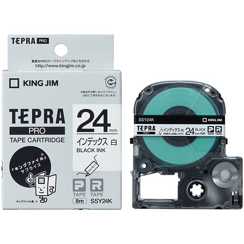 キングジム テプラ PRO テープカートリッジ インデックスラベル 24mm 白/黒文字 SSY24K 1個