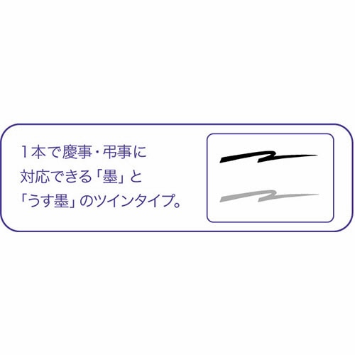 ●1本で慶事・弔事に対応できる「墨」と「うす墨」のツインタイプの「筆之助 慶弔ツインS」。