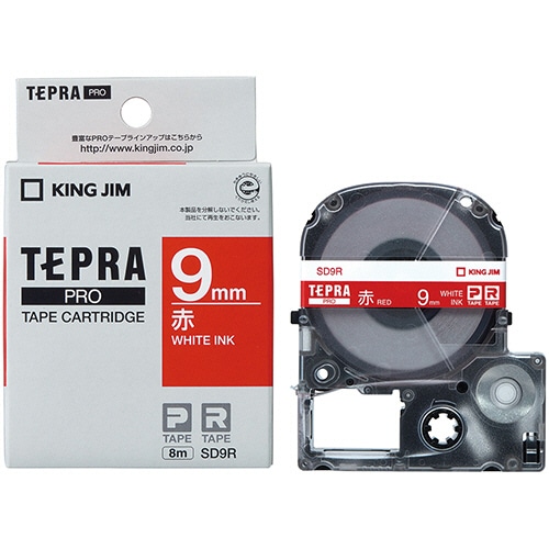 キングジム テプラ PRO テープカートリッジ ビビッド 9mm 赤/白文字 SD9R 1個