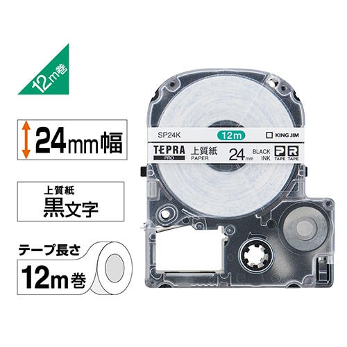 キングジム テプラ PRO テープカートリッジ 上質紙ラベル 24mm 白/黒文字 SP24K 1個