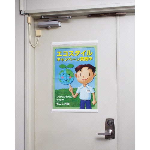 上下にベルト状のマグネットがついています。スチール壁面での掲示に好適です。