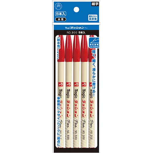 寺西化学 水性サインペン マジックラッションペン No.300 赤 M300-T2-5P 1パック(5本)