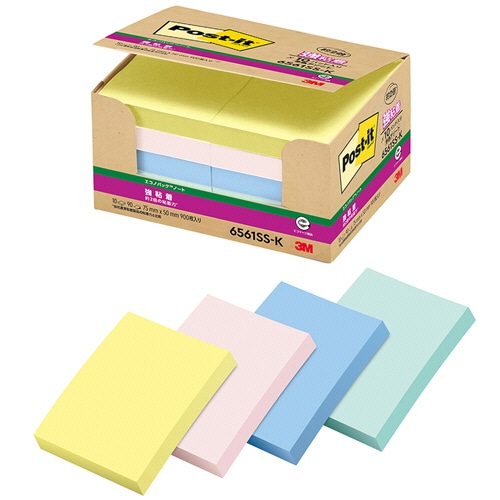 3M ポスト・イット 強粘着 エコノパック ノート 75×50mm パステルカラー 4色混色 6561SS-K 1パック(10冊)
