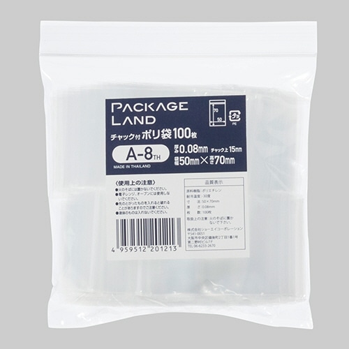 ショーエイコーポレーション チャック付ポリ袋 ヨコ50×タテ70×厚み0.08mm A-8TH 1パック(100枚)